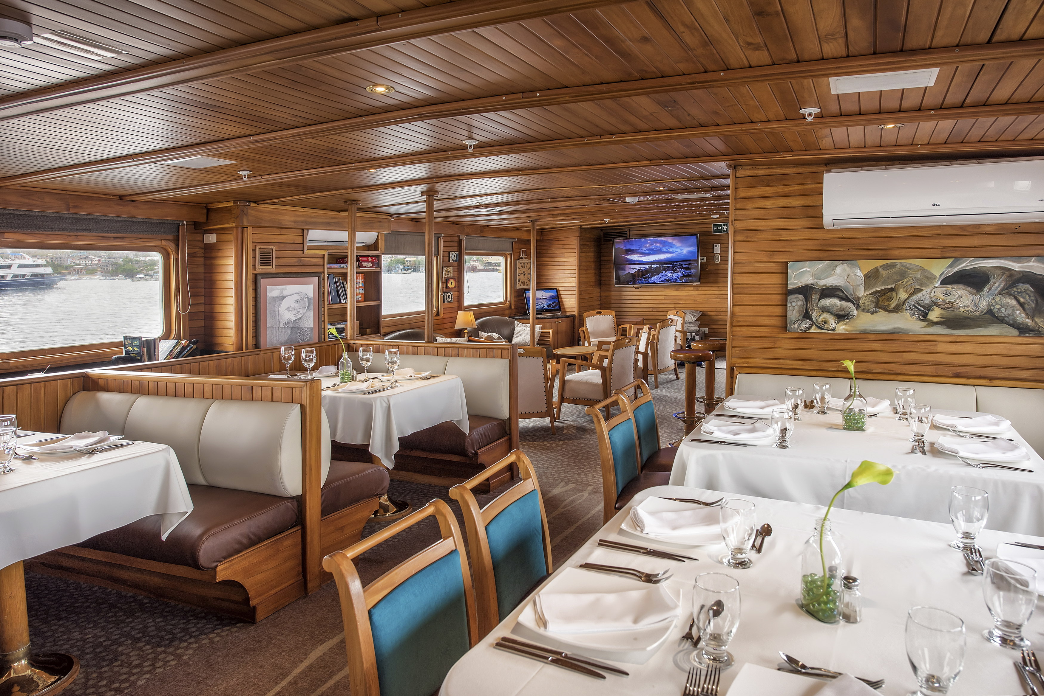 Vi flyger tidigt på morgonen från Quito till Galapagos. Vi landar på ön Baltra, där vi går ombord på Coral II. Vi börjar vår resa på ön Santa Cruz. Vi tar en tur med gummibåten vid Itabacakanalen, en lagun med turkost vatten, där vi kan se hajar, blåfotade sulor och flera olika sorters fisk. Väl ombord igen gör vi oss hemmastadda i våra bekväma hytter och njuter av vår första middag på Galapagos.