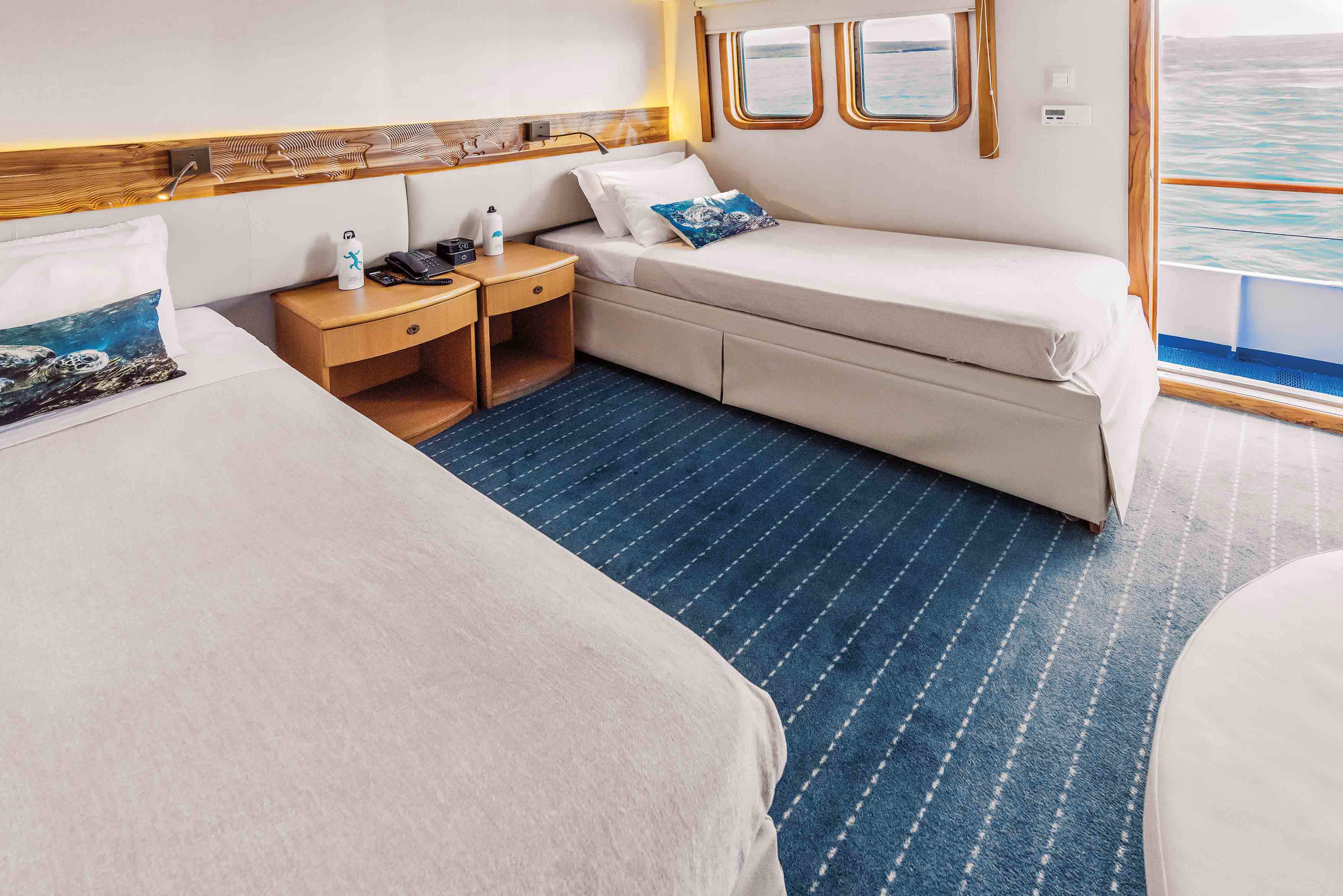Alla hytter är luftkonditionerade och har fönster/ventiler samt privat dusch/WC. Ombord finns en lounge, en matsal, en välförsedd bar, tre soldäck och en jacuzzi. Man är alltid välkommen att hälsa på kapten på bryggan.