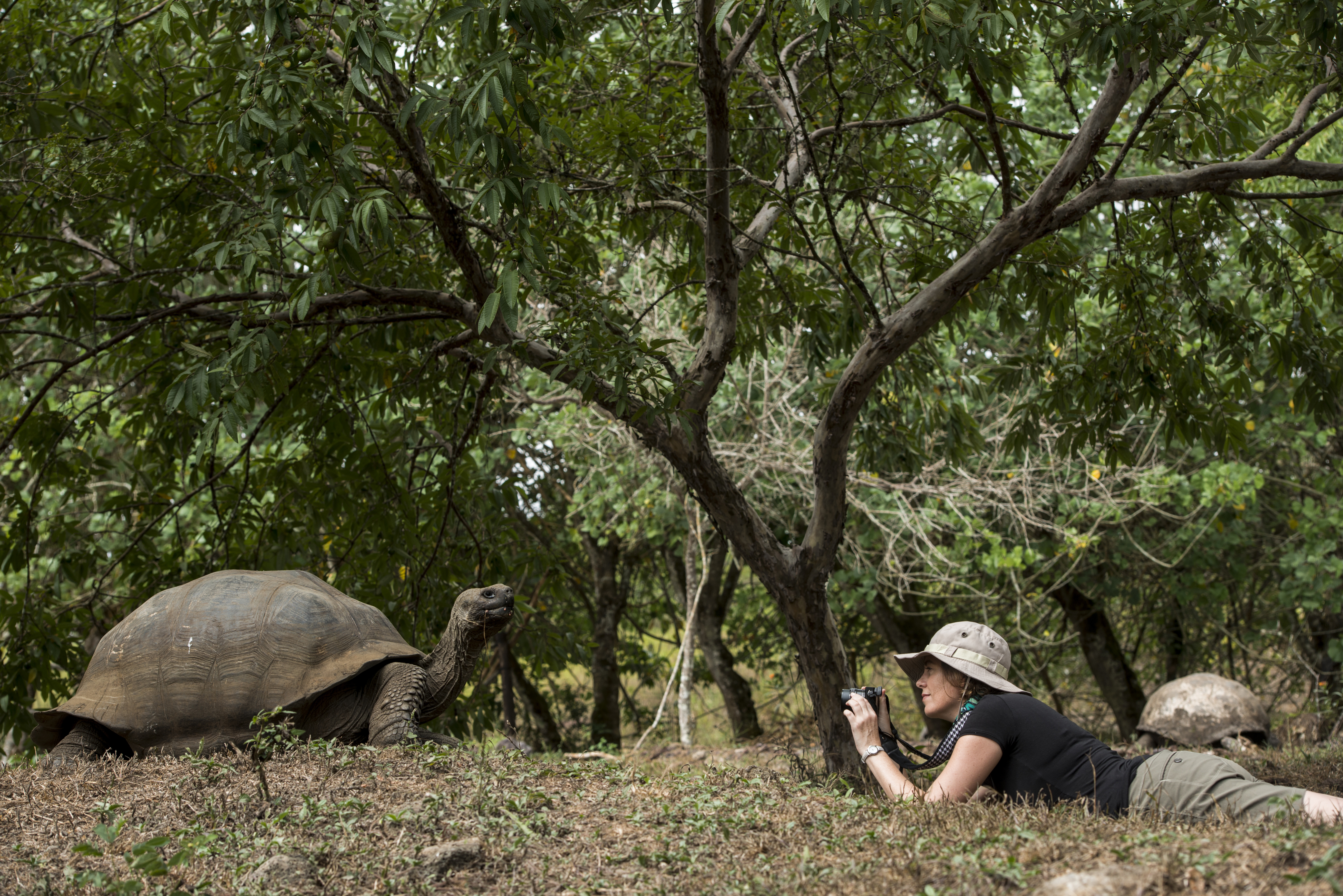 Vi tar oss sedan vidare till Santa Cruz och under morgonen besöker vi Charles Darwins forskningsstation. Under en spännande rundvandring lär vi oss mer om de elefantsköldpaddor och landleguaner som föds upp här. På Santa Cruz centrala högland har vi stor möjlighet att på nära håll interagera med helt vilda elefantsköldpaddor. Under en kort promenad bland dessa enorma reptiler har vi också chans att se flertalet olika fåglar, speciellt flera olika finkar.