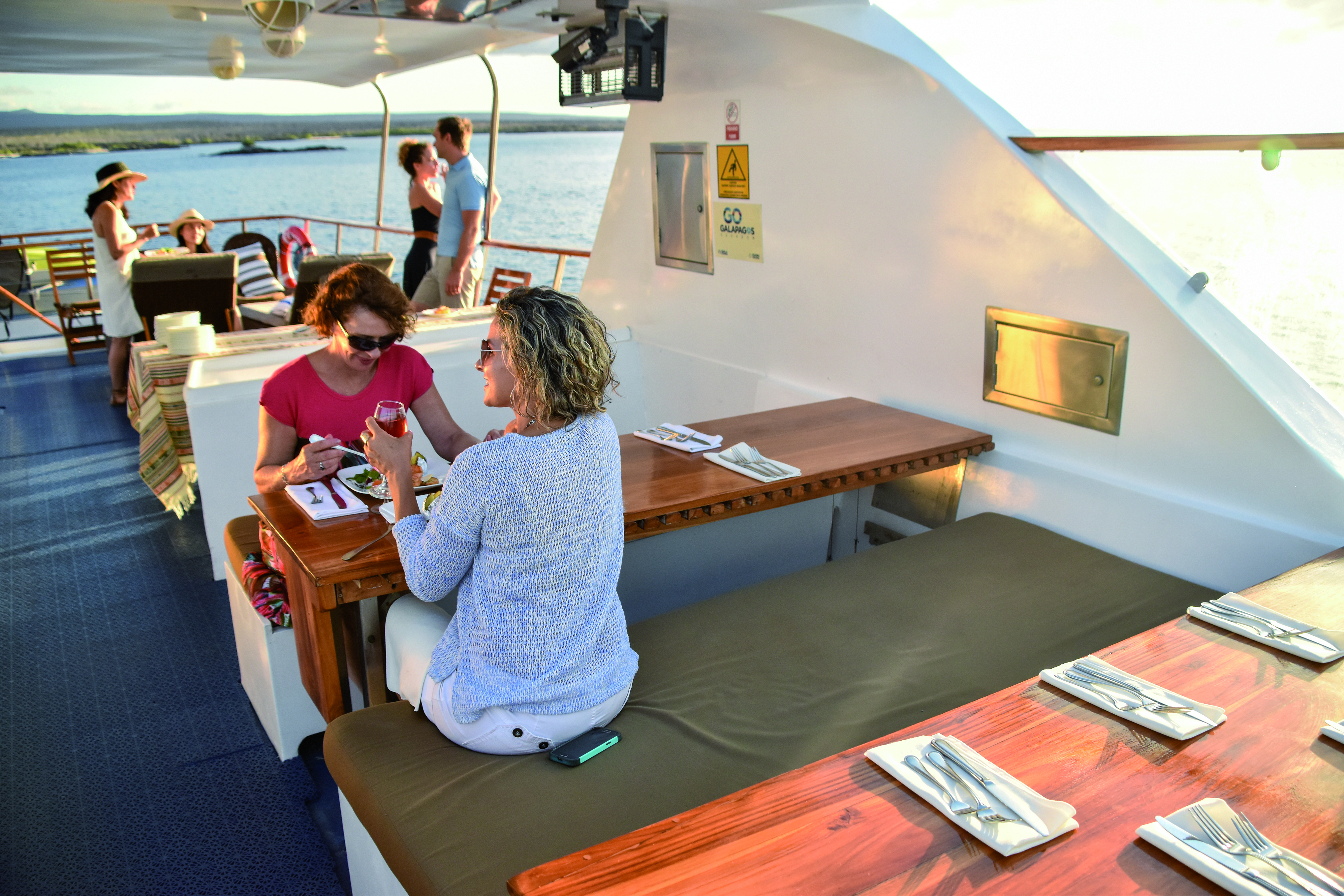 På eftermiddagen tar vi oss till sandstranden Darwin Bay där vi möts av svalstjärtade måsar som sägs vara världens vackraste måsar. Vi har också chans att få se häckande rödfotade sulor och stora fregattfåglar.
