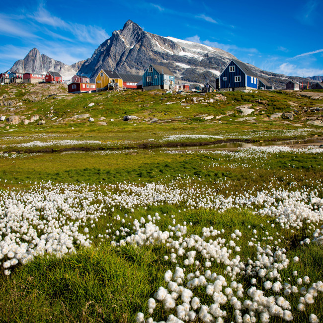 Tack vare ett komplext strömsystem, är Grönland en ö full av naturliga kontraster med allt från djupa fjordar och glaciärer till varma källor, gräsbevuxna ängar och höga berg.