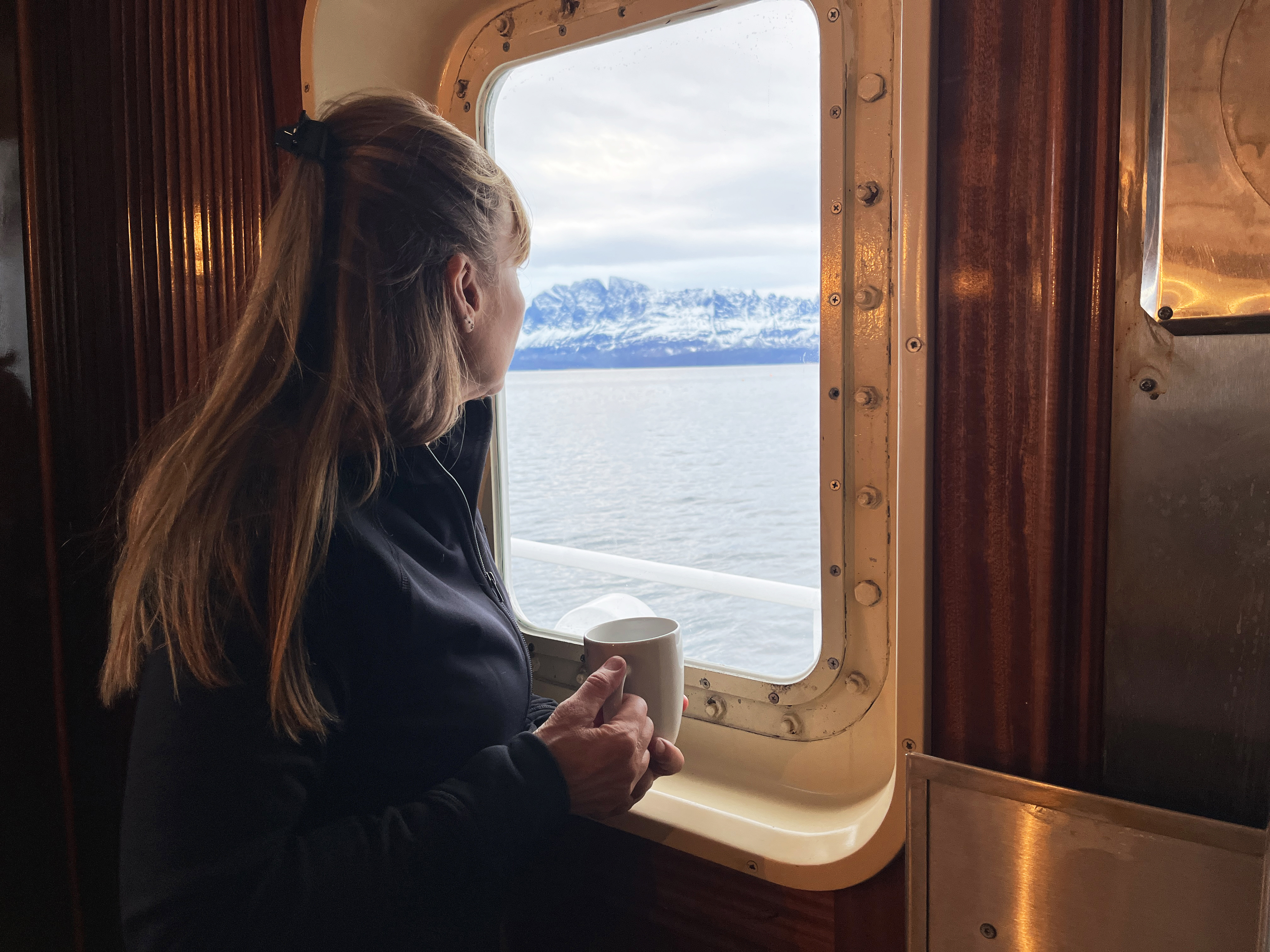 Vi färdas vidare och kanske går vi in i den magiska Evighedsfjorden och seglar längs fjäll som reser sig uppemot 2000 meter.