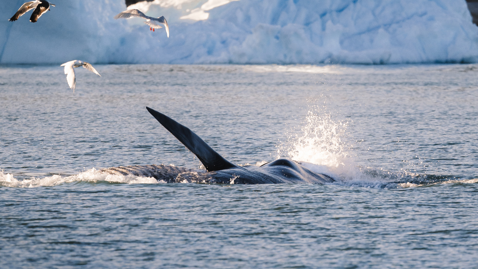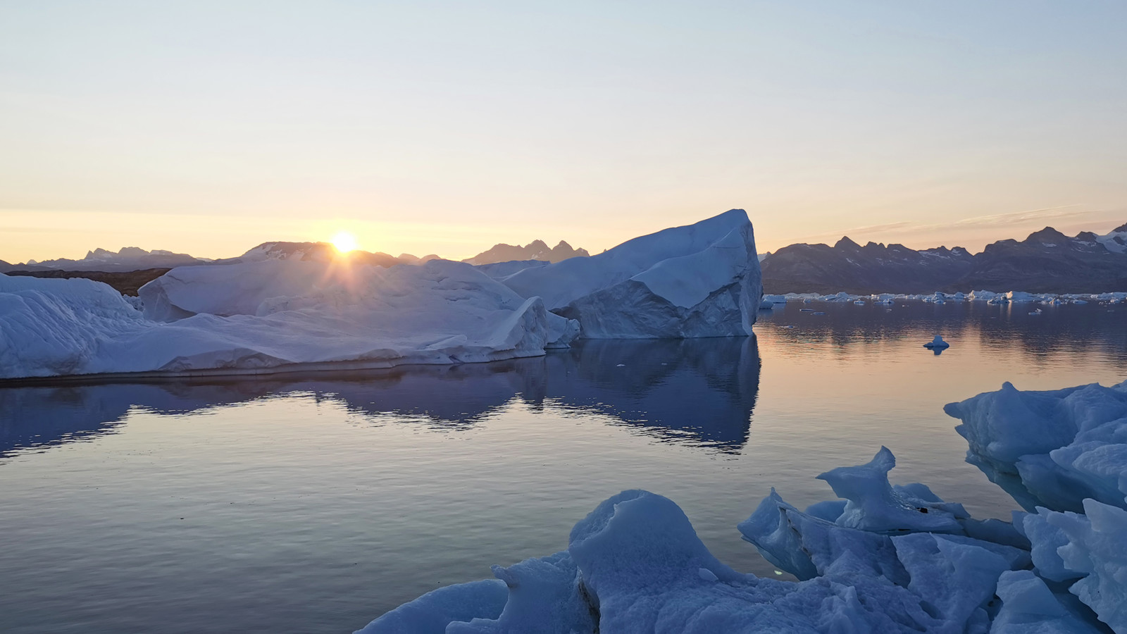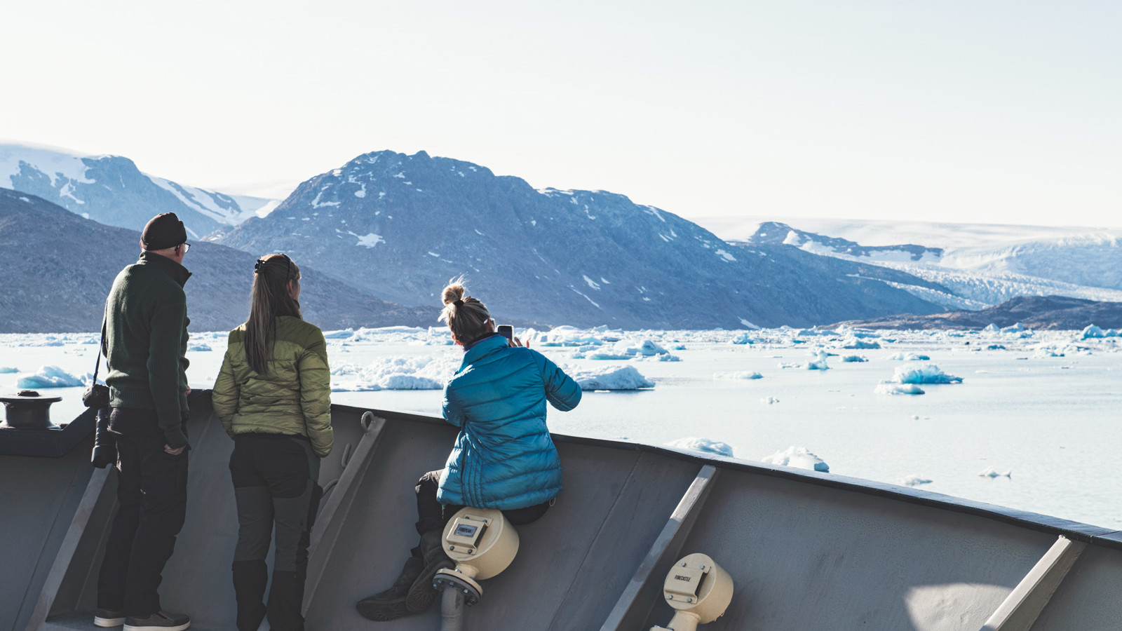 Vi fortsätter in i den mäktiga Sermilikfjorden. Den sträcker sig över 90 kilometer och skär genom ett kargt landskap med höga glaciärer och spetsiga toppar, och vi befinner oss bland en myriad av isberg i alla former och storlekar. De flesta av dem kommer från Helmeim-glaciären längst in i fjorden, som producerar några av de största isbergen på hela Grönland. Skönheten runt omkring oss är frapperande!