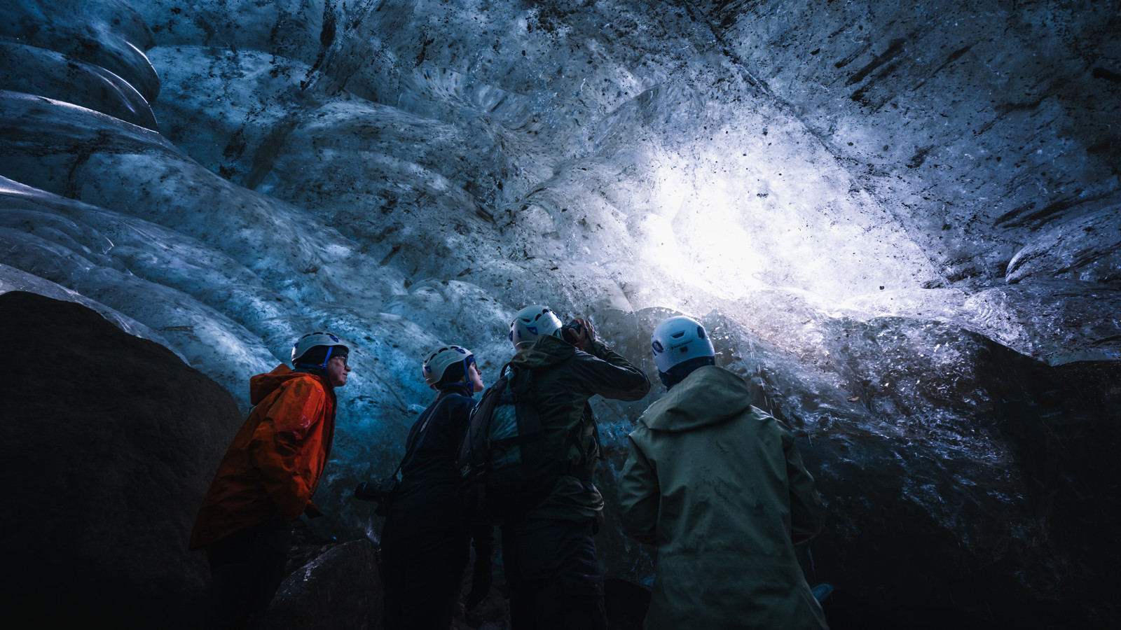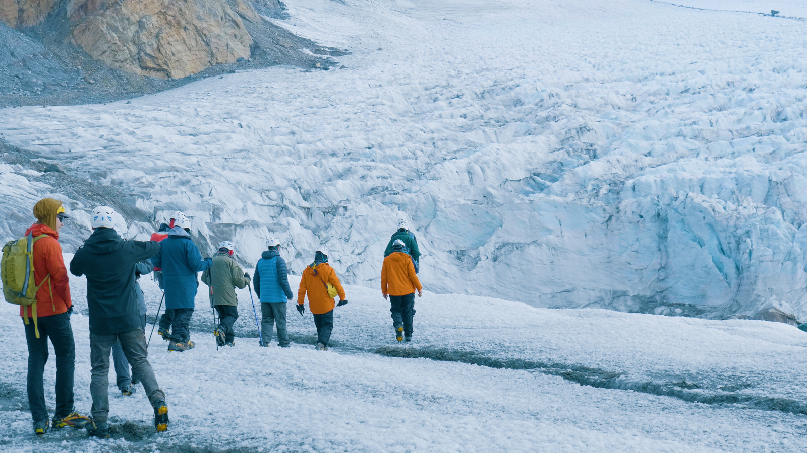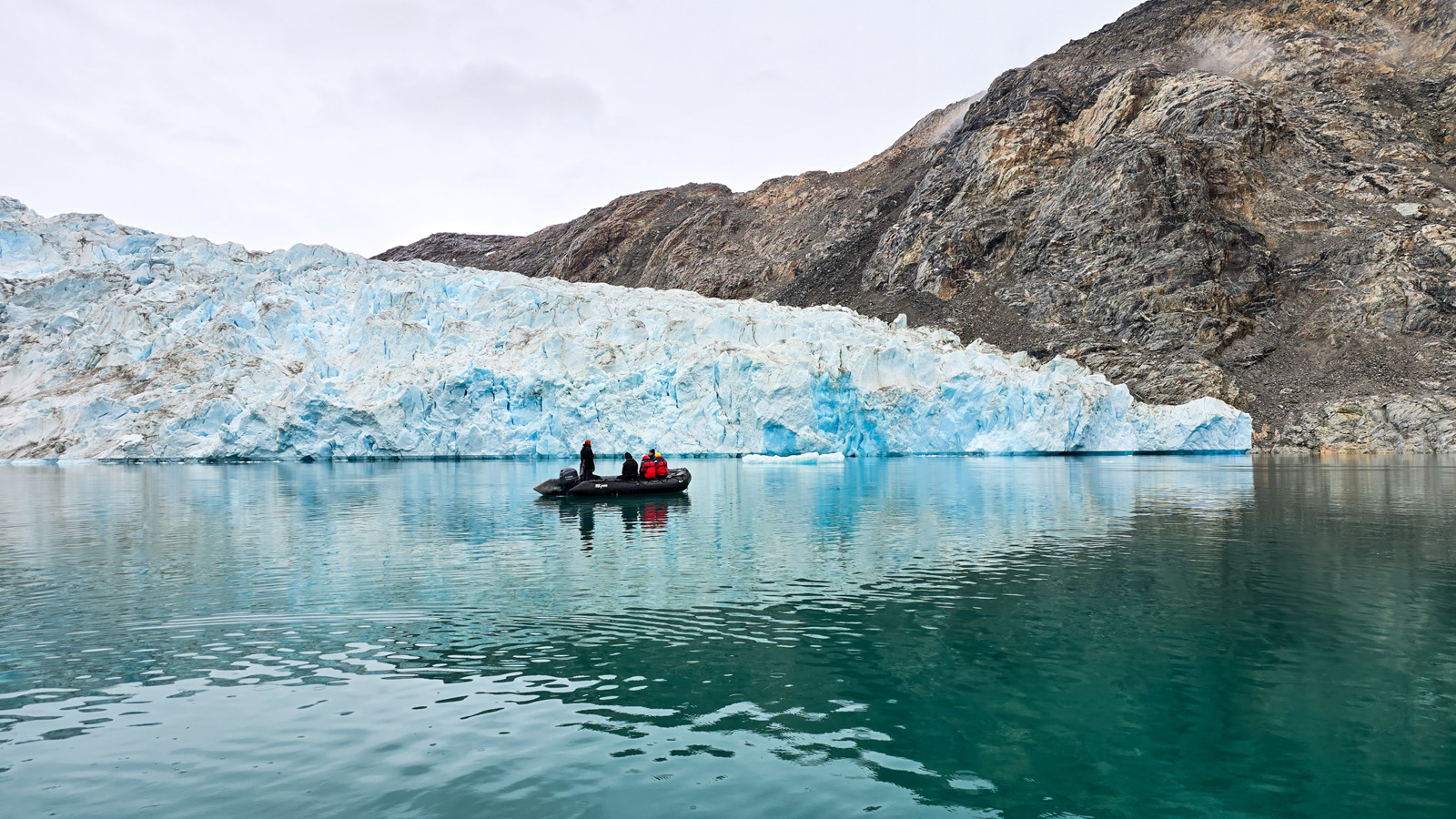 Efter en god frukost går vi av fartyget i Kulusuk och beger oss ut på en sista spännande utflykt – en tur till en isgrotta. Vi tar oss dit med båt och fortsätter sedan till fots över glaciären, vilket är en upplevelse i sig. Väl framme vid grottan har vi gott om tid att utforska denna surrealistiska värld av blå nyanser och fascinerande detaljer. Efter besöket fortsätter vi lite längre in på glaciären till en utsiktspunkt där vi kan beundra kalvningsfronten – platsen där isen möter havet och isberg föds.