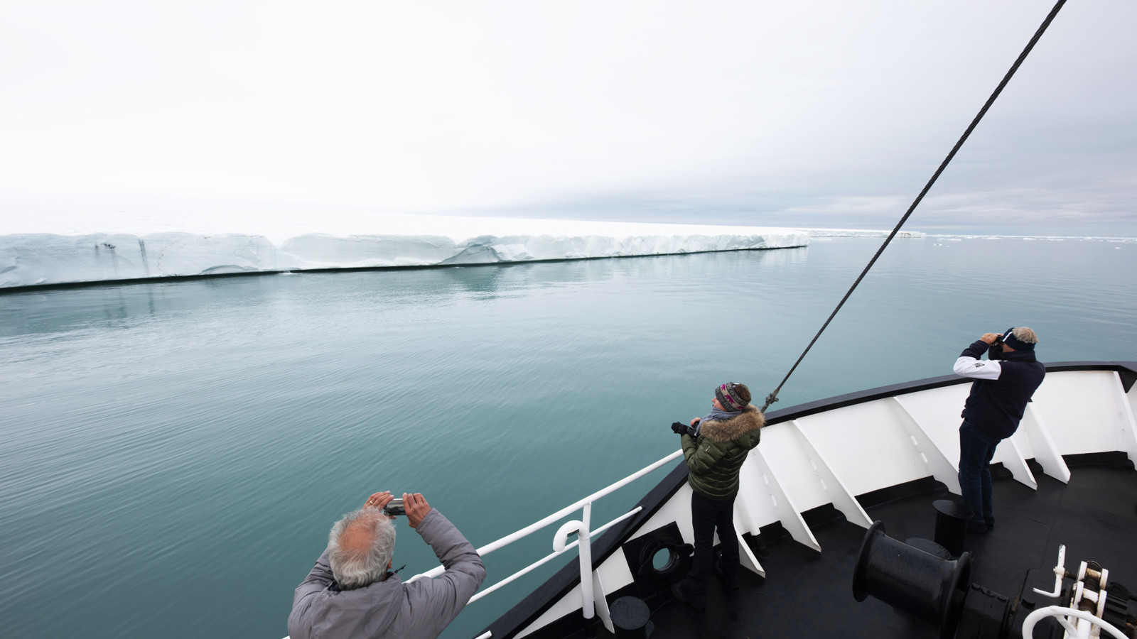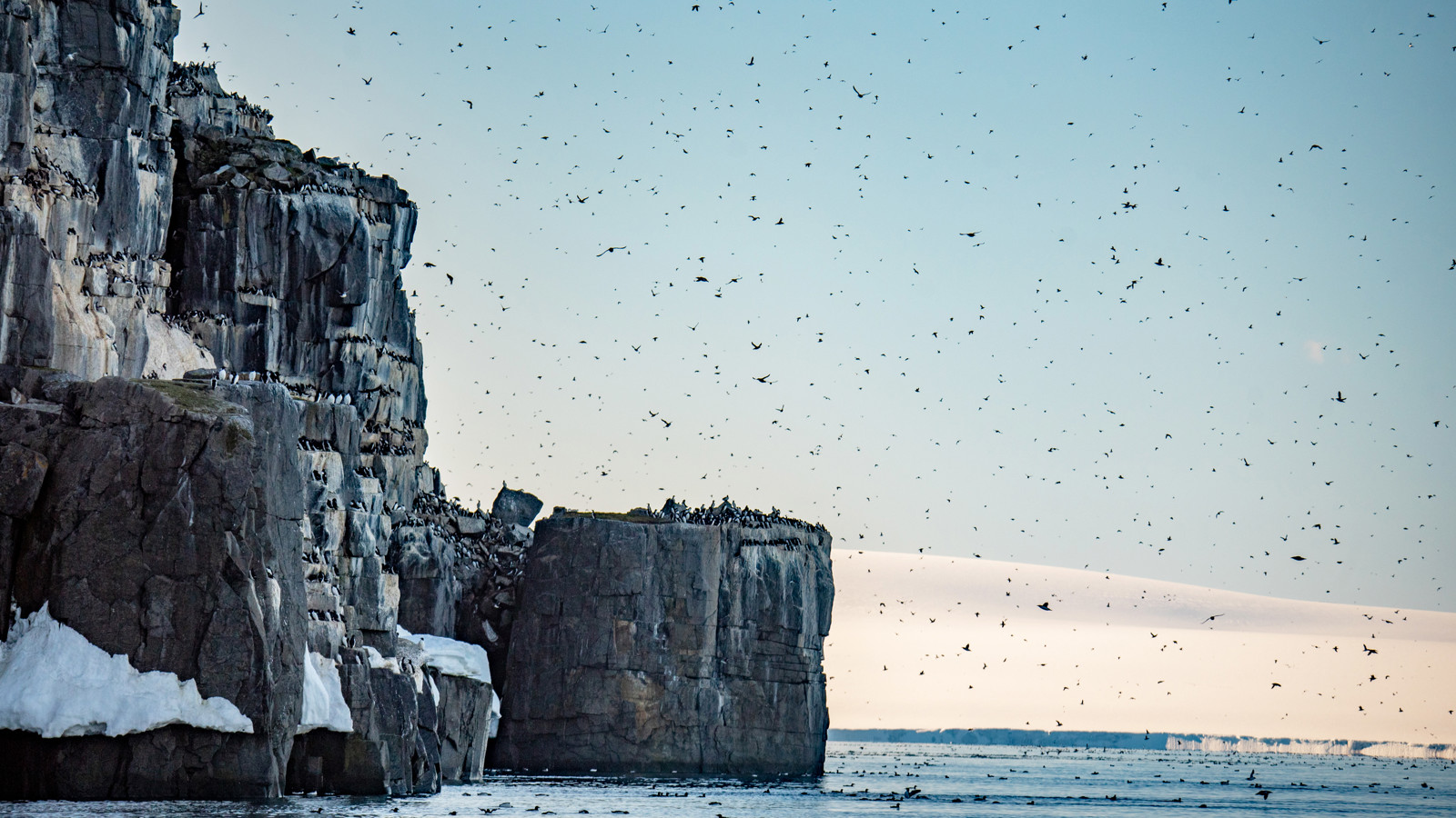 Har vi tur släpper isen in oss i Hinlopen och under goda förhållanden når vi Alkefjellet, en lodrät och spektakulär basaltklippa som utgör häckningsplats för närmare 200 000 spetsbergsgrisslor. Kanske seglar vi vidare in i vackra Palanderbukta på Nordaustlandet.