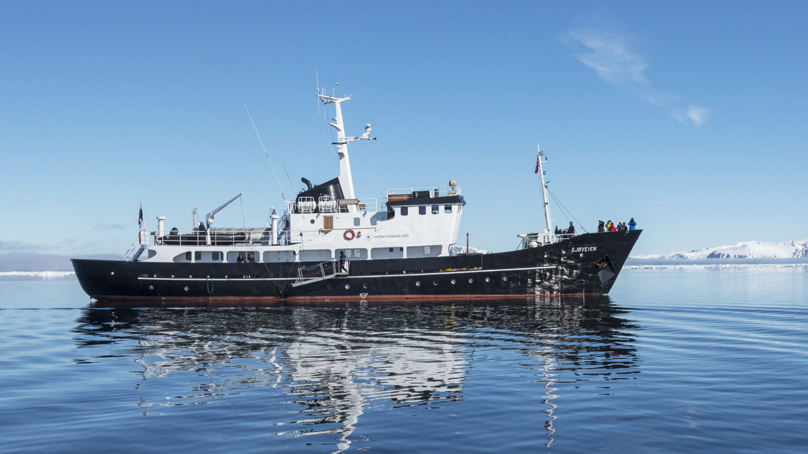 Fartyget M/S Sjøveien byggdes i Bergen 1964 för den norska regeringen. 2017 restaurerades hon totalt och startade sin karriär som ett litet, exklusivt passagerarfartyg på Svalbard. M/S Sjøveien är en sann skönhet i modern stil med trädäck och inslag av klassiska detaljer. Ute på huvuddäck finns det gott om plats för att spana efter djurliv och fotografera.