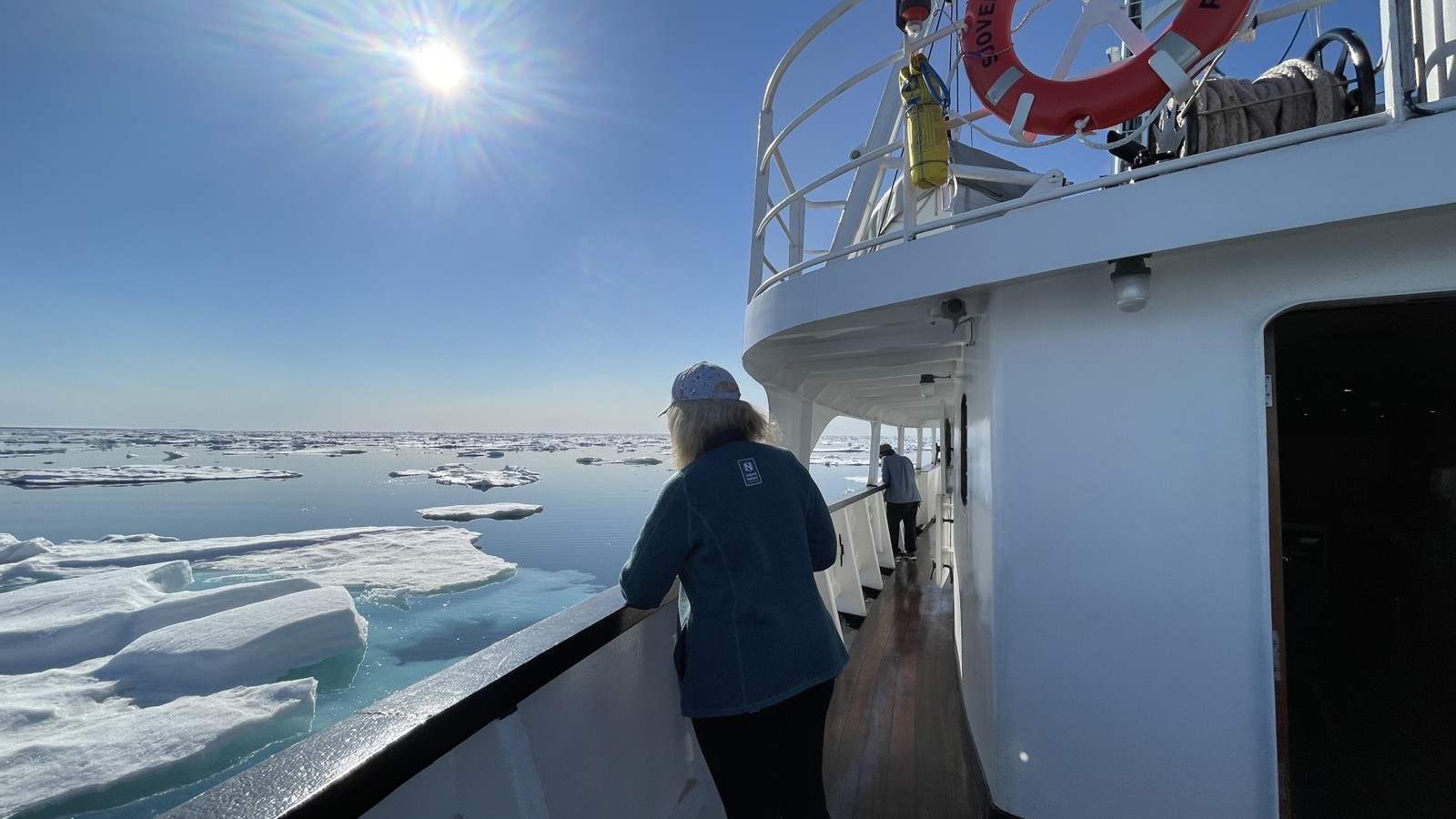 Under den korta, men intensiva sommarperioden från slutet av juni till början av augusti, upplever vi fjällflorans blomning och den förtrollande midnattssolen. Isen släpper sitt grepp om öarna, vilket ger oss möjlighet att utforska mer av arkipelagens östra delar. Valobservationer blir mer frekventa och det avtagande snötäcket på land möjliggör längre vandringar.