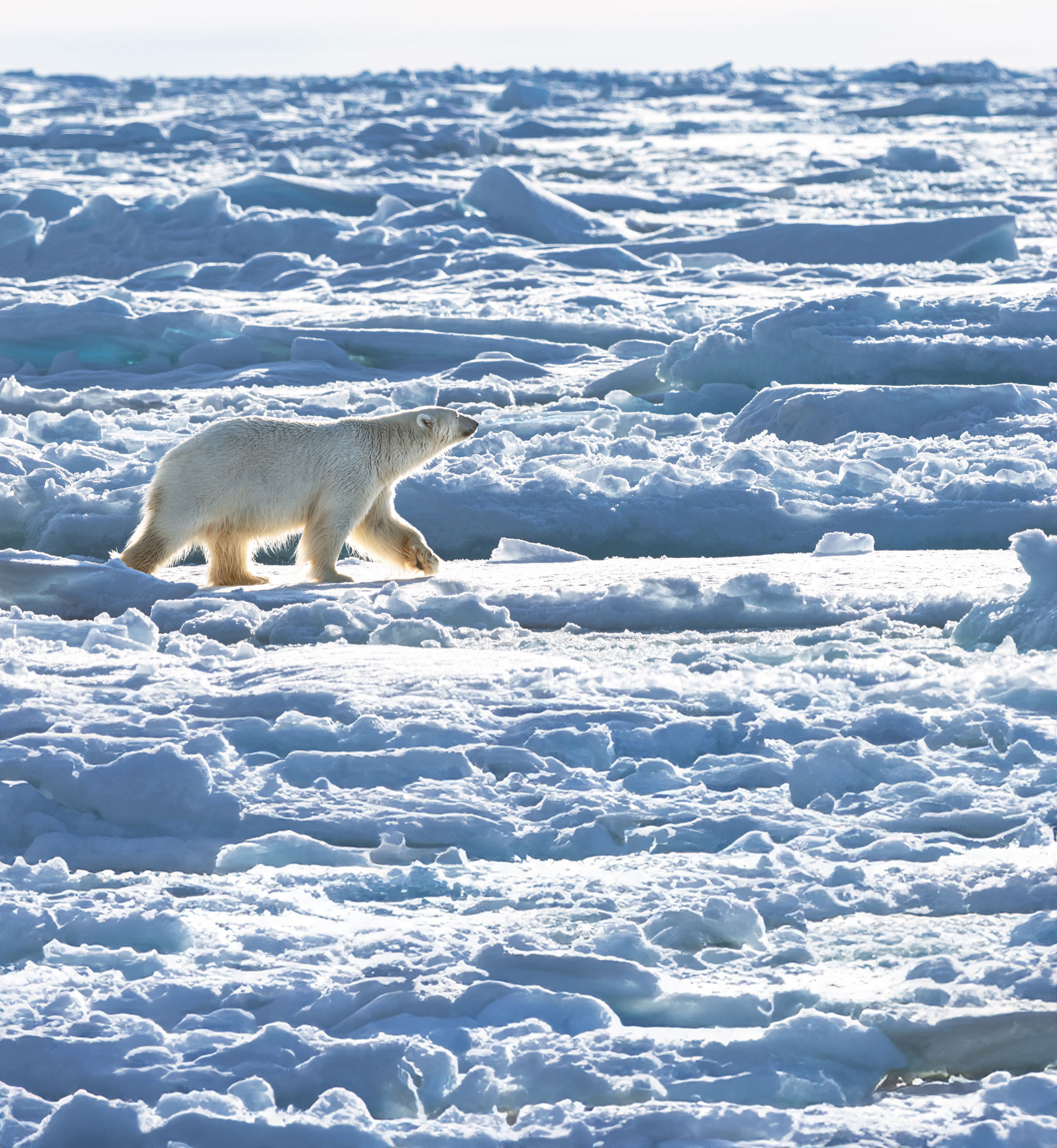 Med riktning mot nordpolen är ambitionen att ta oss upp norr om Spetsbergen för att möta packiskanten och spendera cirka två dagar här. Denna flytande och ständigt föränderliga livsmiljö är minst sagt fascinerande och en mäktig upplevelse. Hit kommer inte många fartyg, och vi kan njuta av den stillhet som råder i detta storslagna islandskap. Vi håller hela tiden utkik efter det spännande djurliv som är knutet till ishavet, såsom isbjörn, säl och ismås. Packisen runt Svalbard är av stor betydelse för ögruppens ekosystem och klimat. Den utgör också en grundpelare för livet i Arktis.