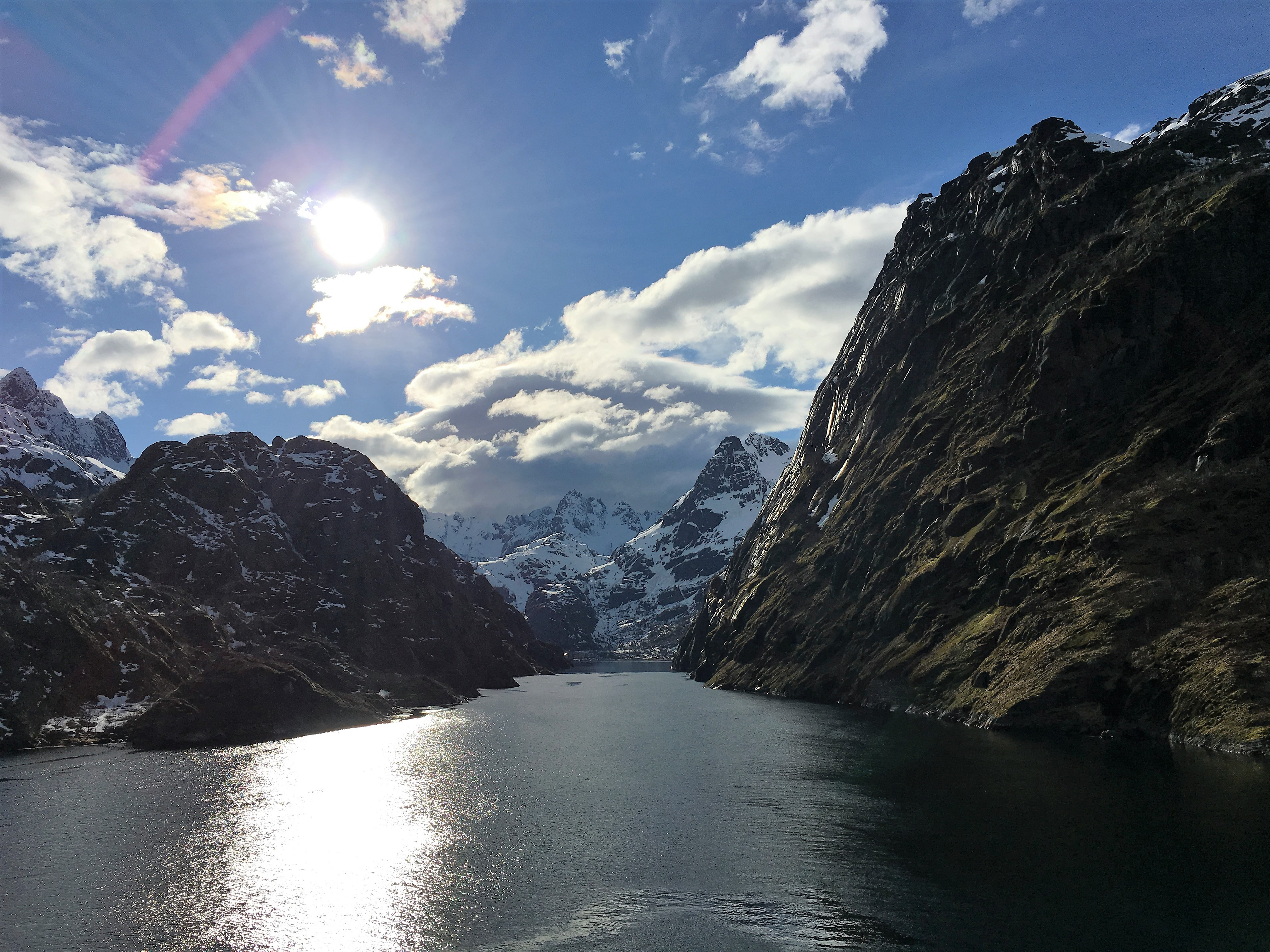 Vi fortsätter vår seglats utefter Lofotväggen och vidare genom Trollfjorden som är lika magisk som namnet antyder. Lite senare beger vi oss ut till havs och sätter kurs mot Björnön. Redan efter ett par timmar till sjöss når vi välkända valskådarområden som sträcker sig utefter kontinentalsockeln. Under vår färd har vi chans att se val och vi håller ständigt utkik ute på däck.